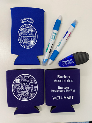 Over my seven-year tenure at The Barton Companies, I was responsible for the design of numerous full booths, popup banners, tablecloths, and signage for three distinct brands. These materials were utilized at a variety of conferences, career fairs, and other events. Additionally, I managed the design, selection, and management of the swag inventory for each brand.